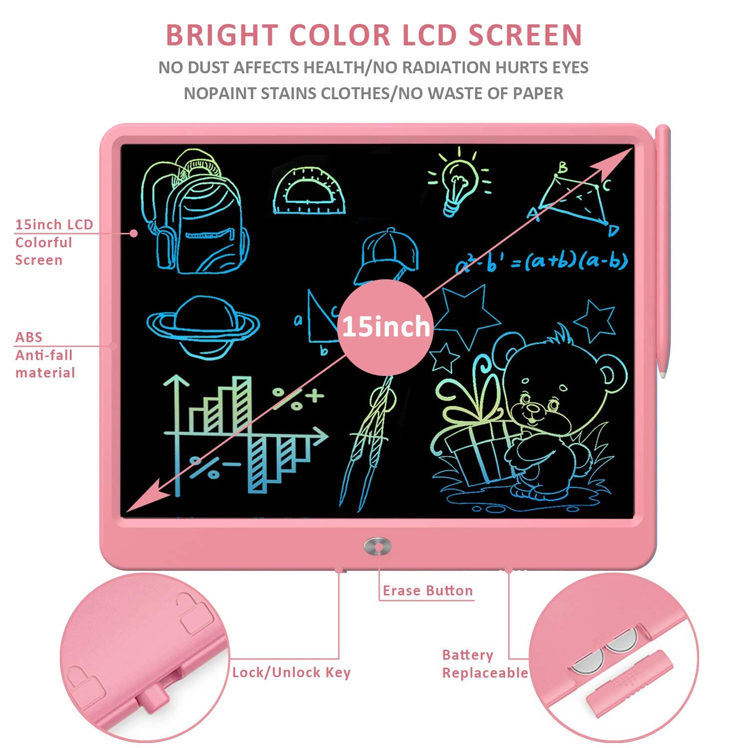 proffisy LCD Writing Tablet 15 Inches Colorful Screen Drawing Pad