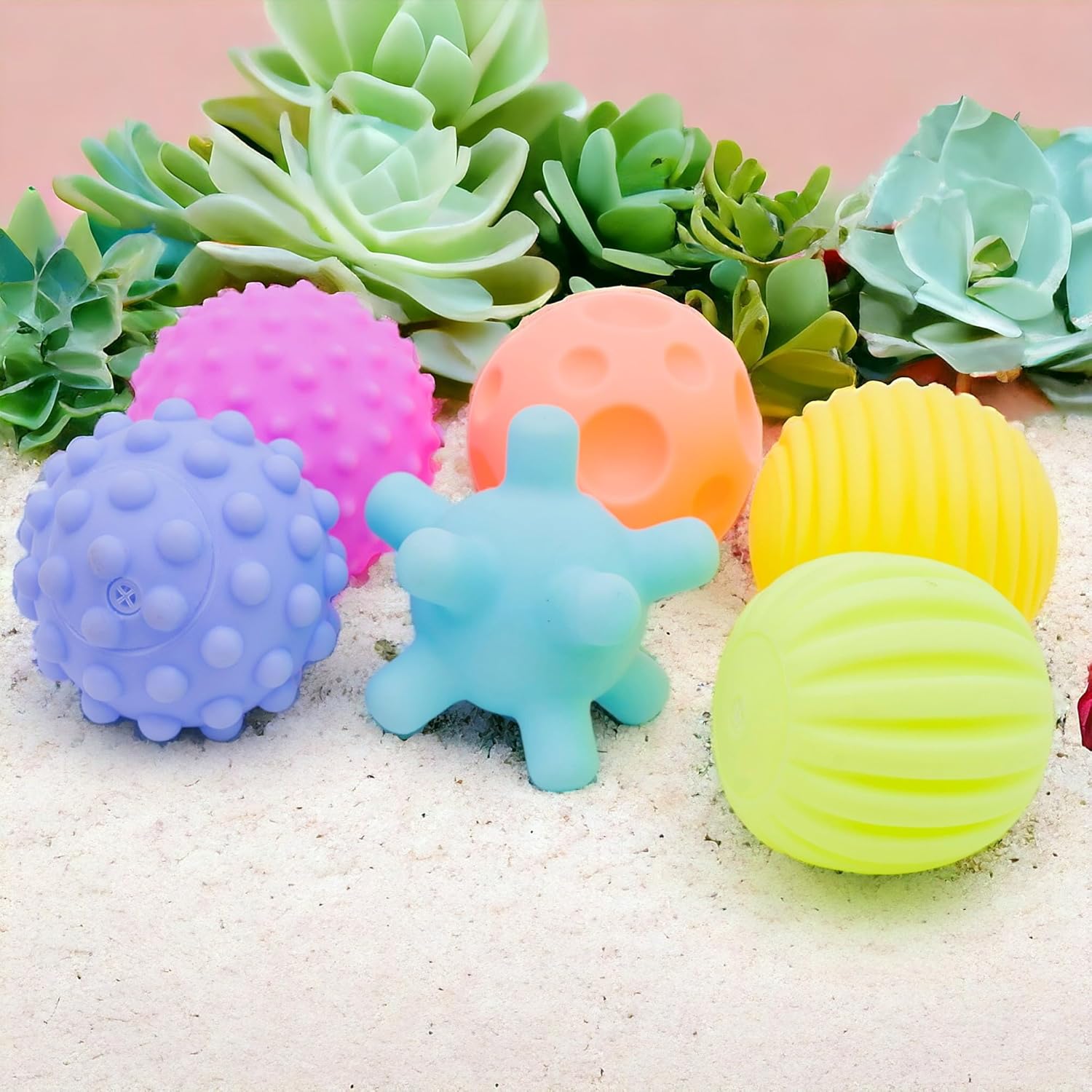 B4BRAIN Sensory Balls Toy Pack of 6 | Colourful Squeaky Ball | Hand Eye Coordination