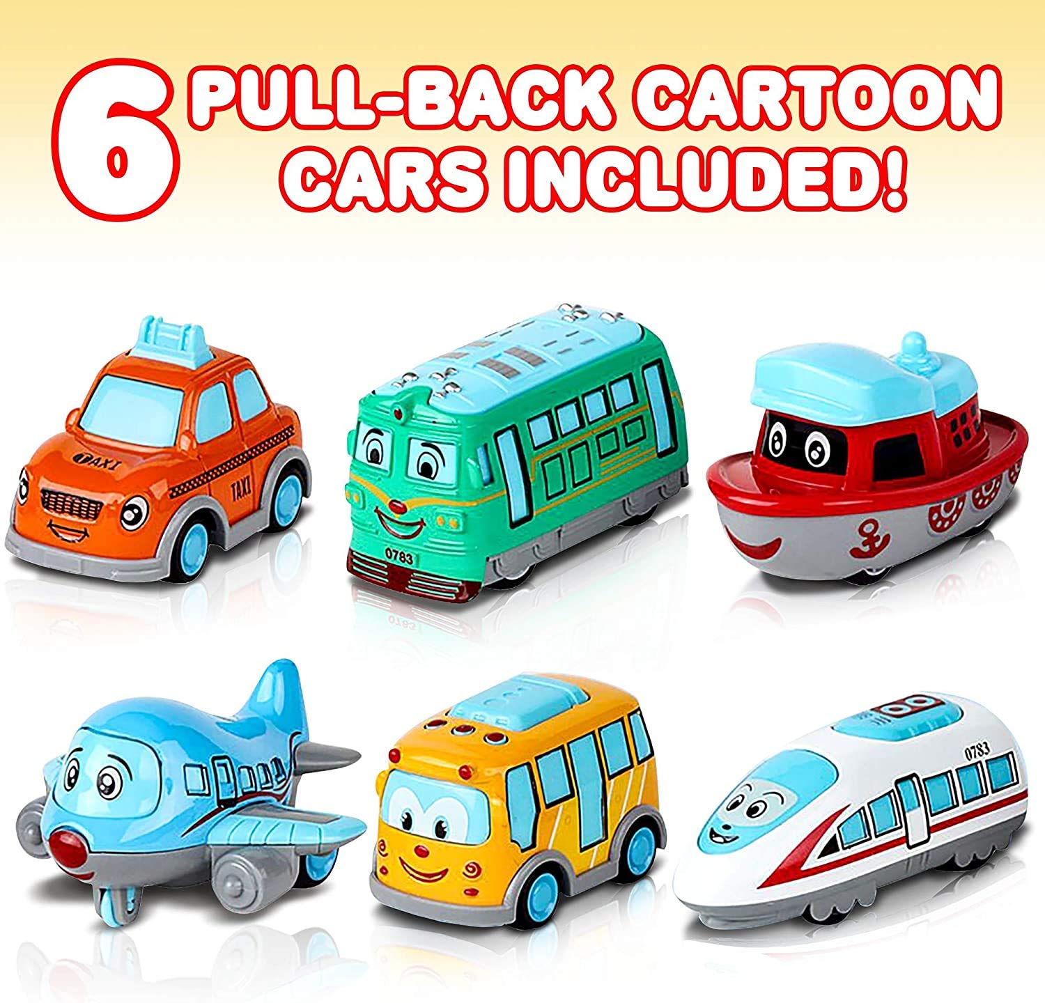 Toyshine Pack of 6 Modes of Transport Metal Friction Powered Car Toy Sett Push and Go Toys for Kids