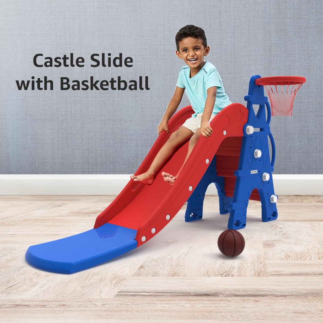 Solimo Modern Castle Slide with Basketball for Indoor and Outdoor Use for Kids 2 8 Years Old Safe and Fun Ideal